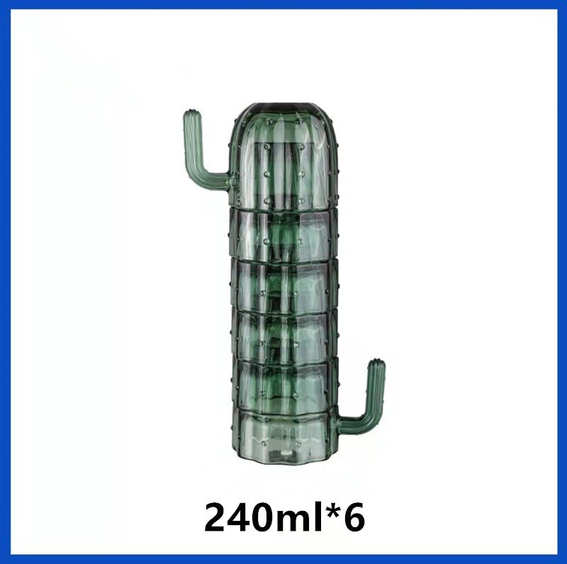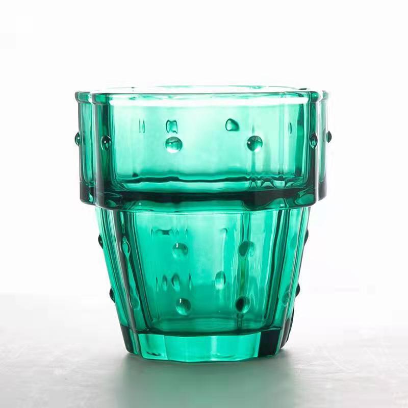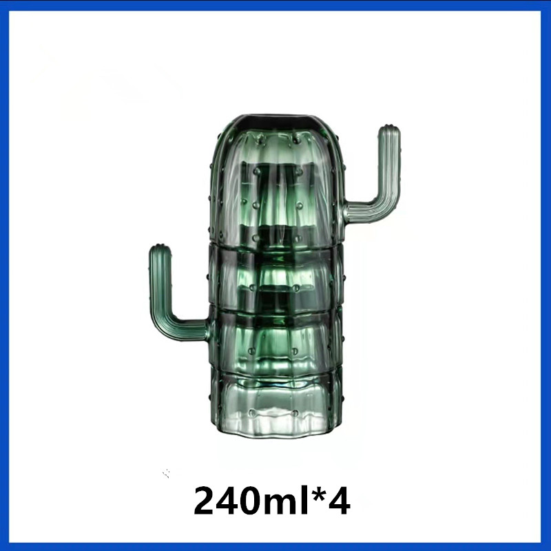 240ml Stackable transparent Cactus glass cup set single wall glass cup with handle |