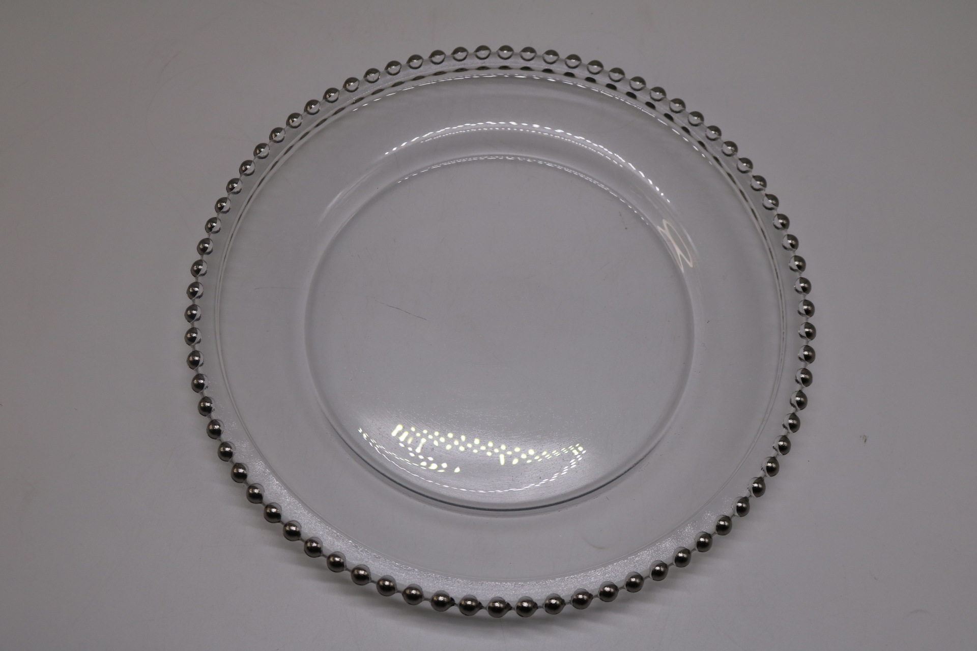 The smooth, polished glass surface enhances the plate’s visual appeal while ensuring easy cleaning, while the precisely applied beads create a seamless, chip-resistant border that retains its beauty over time. The plate’s balanced weight and stable base ensure durability, making it both a decorative accent and a practical dining essential.