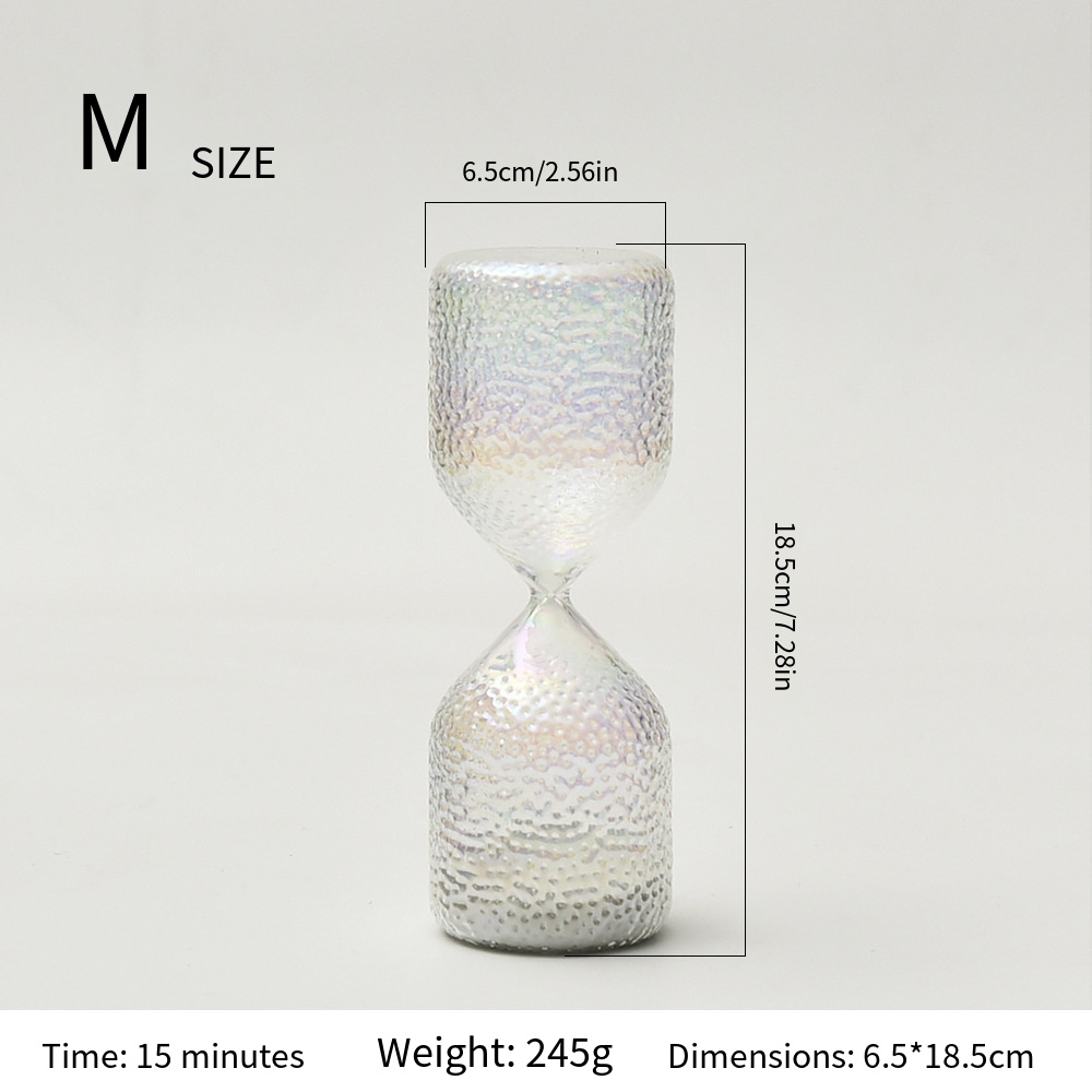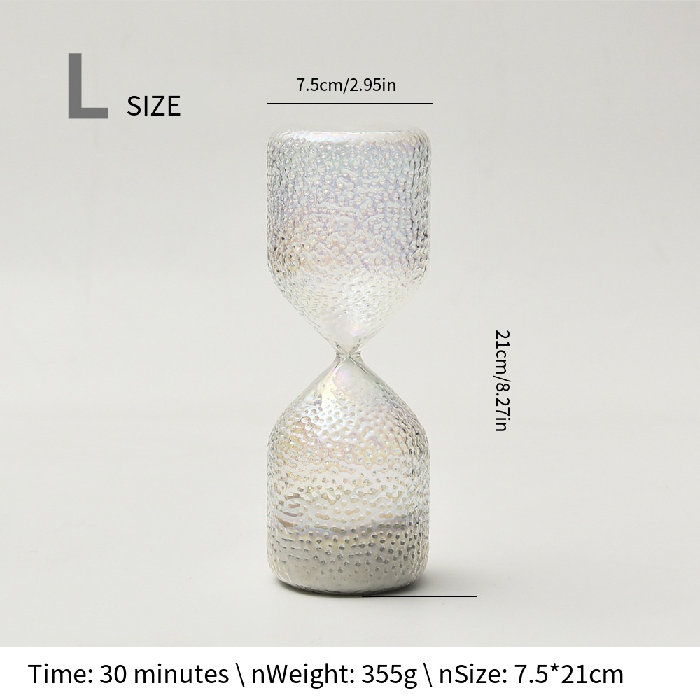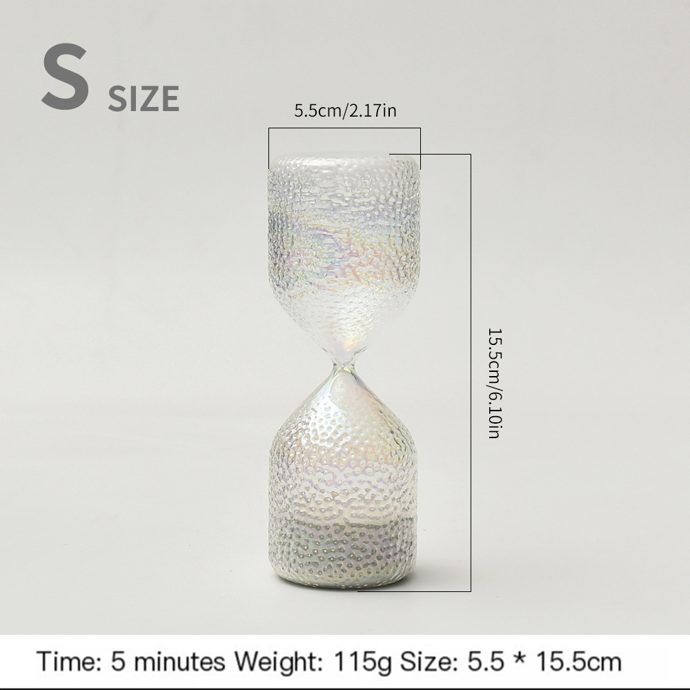 At first glance, this hourglass captivates with its sleek cylindrical silhouette—a modern take on traditional hourglass shapes. The high-borosilicate glass body is infused with a subtle, iridescent glow, creating a prism-like effect that shifts with light, casting soft rainbows across surfaces. Inside, pure white sand flows like liquid snow, its uniformity and smooth texture ensuring consistent timing (30 seconds, 1 minute, or custom durations) for both practical use and visual delight.