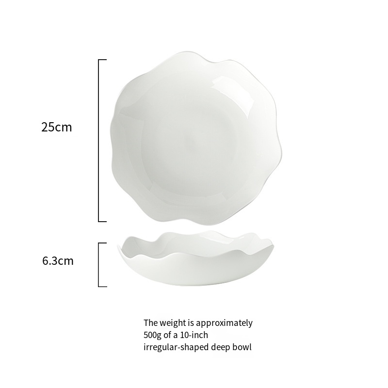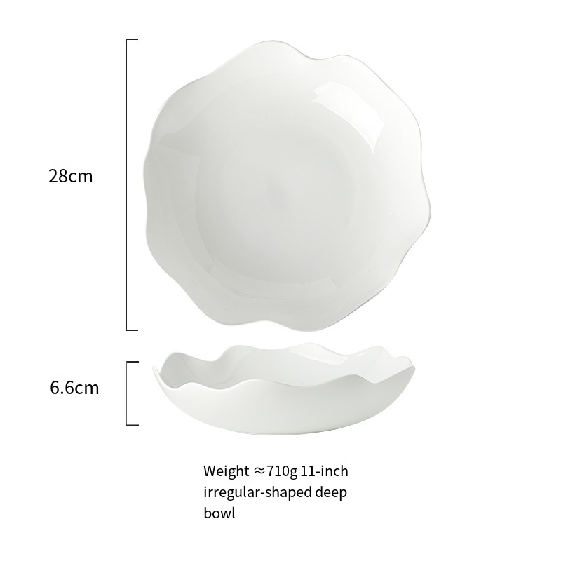 - Balanced Depth & Proportion: Designed with a gently curved interior (some styles featuring a deeper profile, ideal for saucy dishes or soups), the plate offers ample space for plating while the irregular rim frames the food like a work of art. The base is stable and flat, ensuring the plate sits securely on tables despite its asymmetrical top—marrying form and function seamlessly.