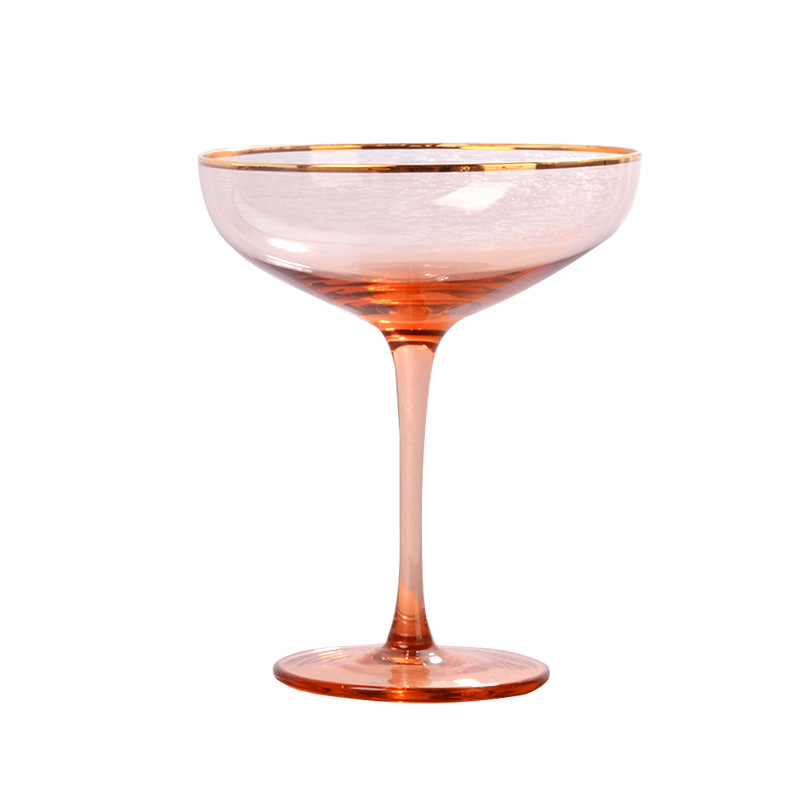 Elevate beverage moments with our exquisite lead-free stemware collection, where soft blush pink glass meets a delicate gold-plated rim to craft a fusion of femininity and luxury. Forged from ultra-pure lead-free glass, each piece features a translucent blush pink bowl—subtle yet radiant—crowned by a thin, polished gold rim that catches light with every sip. Available in a range of tailored silhouettes to suit diverse drinks, this collection marries soft color aesthetics with refined metallic detailing, making it a standout choice for elegant homes, romantic events, and gifting that embodies understated opulence.