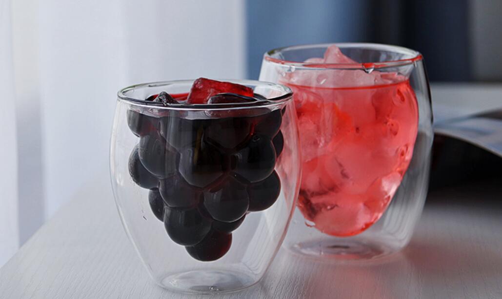 Multiple fruit shape double glass, there are lovely grapes, sweet strawberries, fresh pineapple, etc., a variety of fruit shape can be selected.
