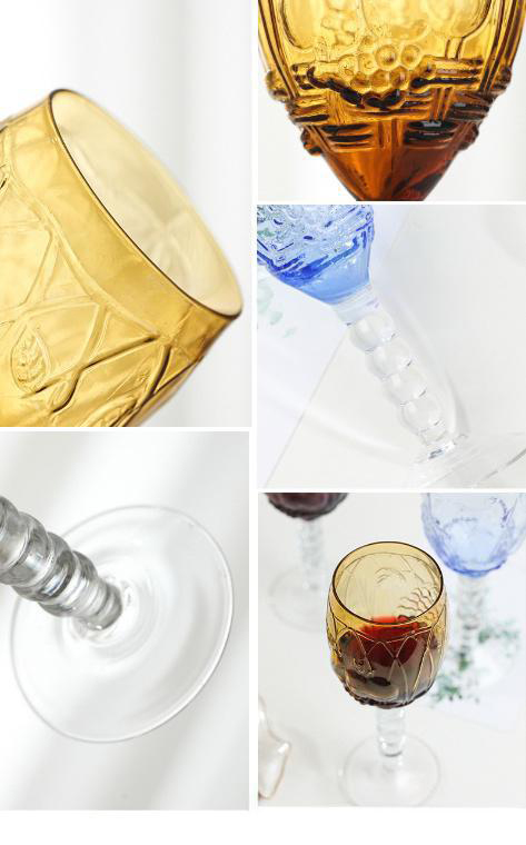 Elevate your tabletop with our exquisitely crafted glass goblets, where vibrant color, intricate texture, and artisanal design converge to redefine luxury drinkware. Forged from premium glass, each piece marries a textured embossed bowl with a sculptural beaded stem, creating a statement of sophistication that transforms every sip into a visual and tactile experience.
