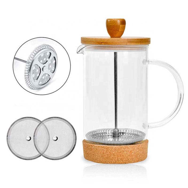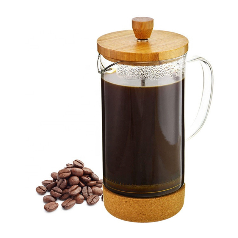 Coffee hand brewing pot French press pot household French filter press pot coffee filter cup with cork base tea brewer