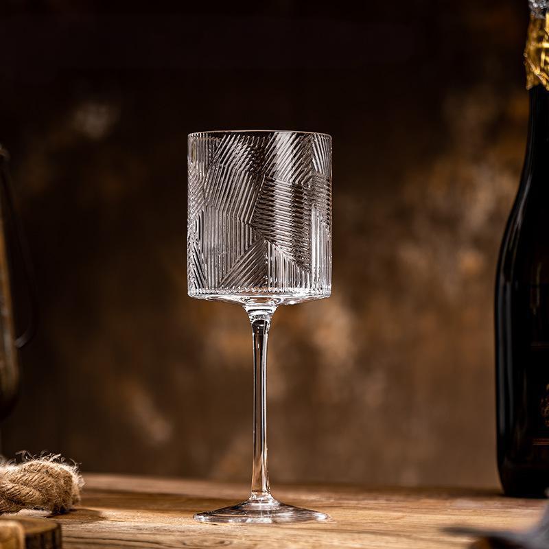 Crafted from high-grade lead-free crystal glass, these goblets boast exceptional transparency and a radiant, light-reflective finish that enhances the depth and hue of your favorite wines. The defining feature lies in their exquisitely embossed cup bodies—each adorned with a meticulously pressed pattern that dances across the surface, creating a tactile and visual masterpiece. This artisanal detail, rendered with precision, adds layers of sophistication: the interplay of light and shadow on the textured surface transforms the goblet into a dynamic centerpiece, merging functionality with artistic expression. The tall, slender stem elevates its silhouette with grace, while the balanced bowl ensures optimal aroma concentration and a comfortable grip, making every drinking experience both luxurious and intuitive.