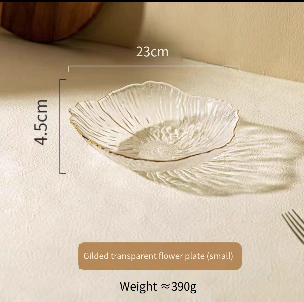 Elevate your dining experience with our Floral-Contoured Glass Charger Plates—where delicate flower-inspired silhouettes meet opulent gilded edges to create a stunning centerpiece for any occasion. Each plate is a masterpiece of glass craftsmanship, blending natural beauty with luxurious details to transform your tablescape into a work of art.