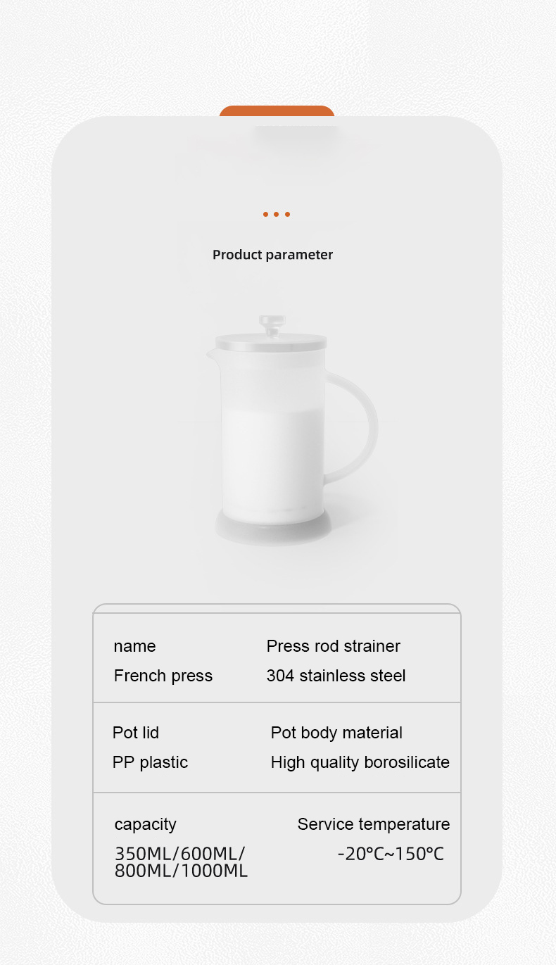 French Press 304 Stainless Steel High Borosilicate Glass French Press Coffee Milk Tea Filter French Press