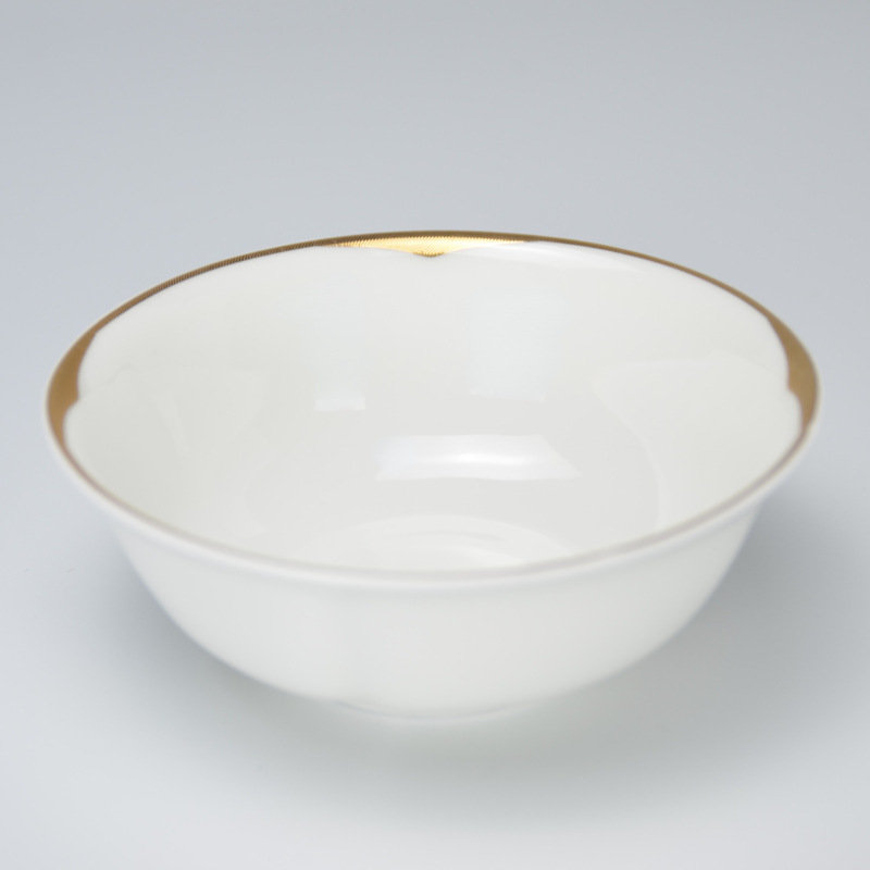- Bowls: Boast a deep, rounded interior with a tapered rim, perfect for soups, salads, or grains. The gold trim follows the bowl’s curve, adding a touch of opulence to casual or formal servings.