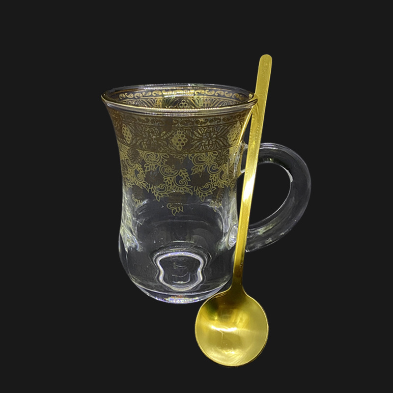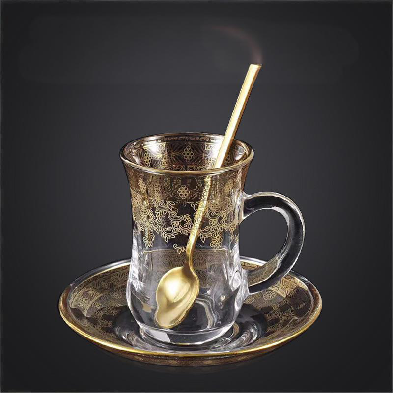 - Artisan-Applied Motifs: Skilled artisans craft intricate motifs—think delicate floral scrolls, geometric lace-like designs, or ornate border patterns—that wrap gracefully around the cup (from base to near the rim) and frame the saucer’s edge. Each pattern is applied using a specialized firing process to bond the gold to the glass, ensuring fade resistance and long-lasting opulence.