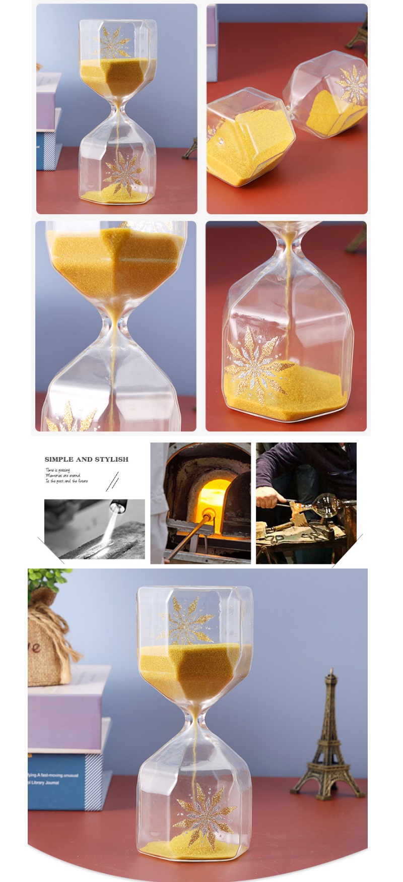 Home decoration hexagonal yellow glass sand timer hourglass custom wine cabinet small ornaments timer |