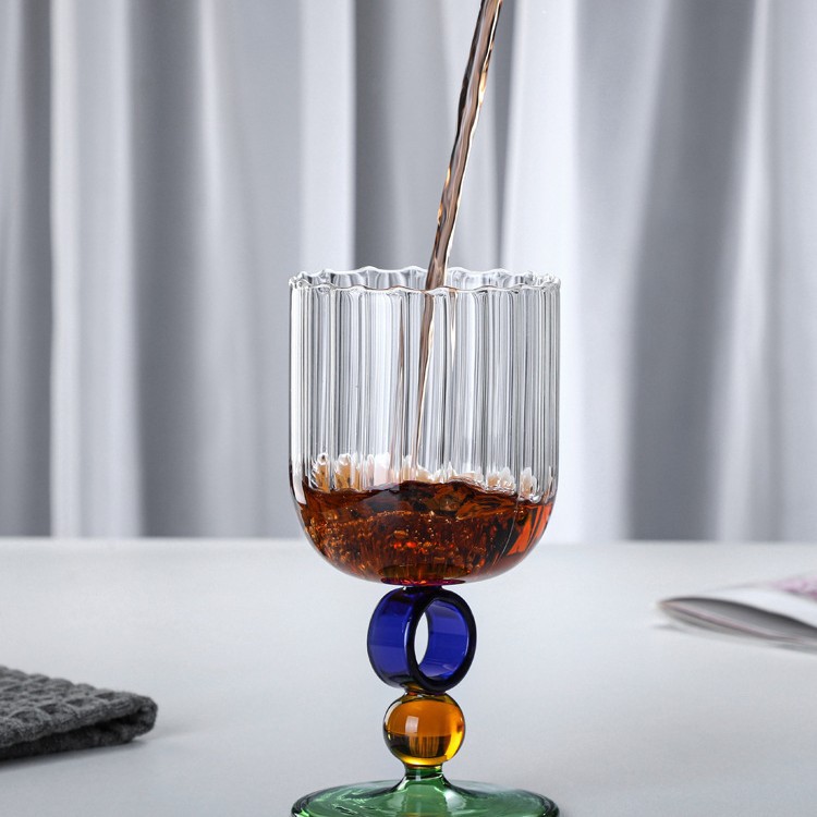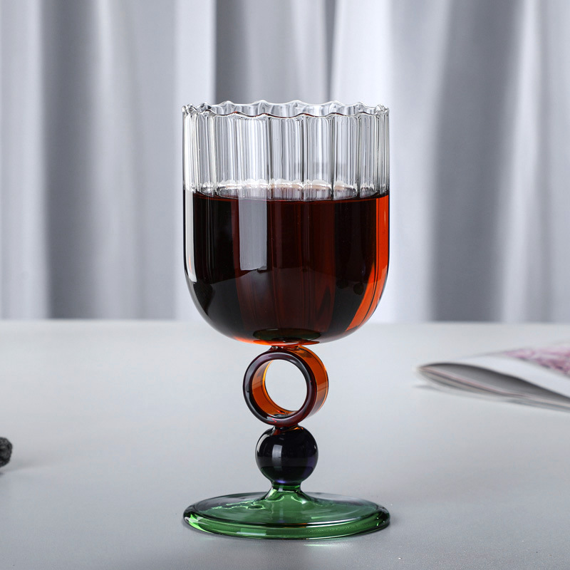 The vertical ribbing isn’t just decorative: it enhances structural integrity, while the ringed stem adds visual weight, balancing the goblet for smooth, elegant sipping.