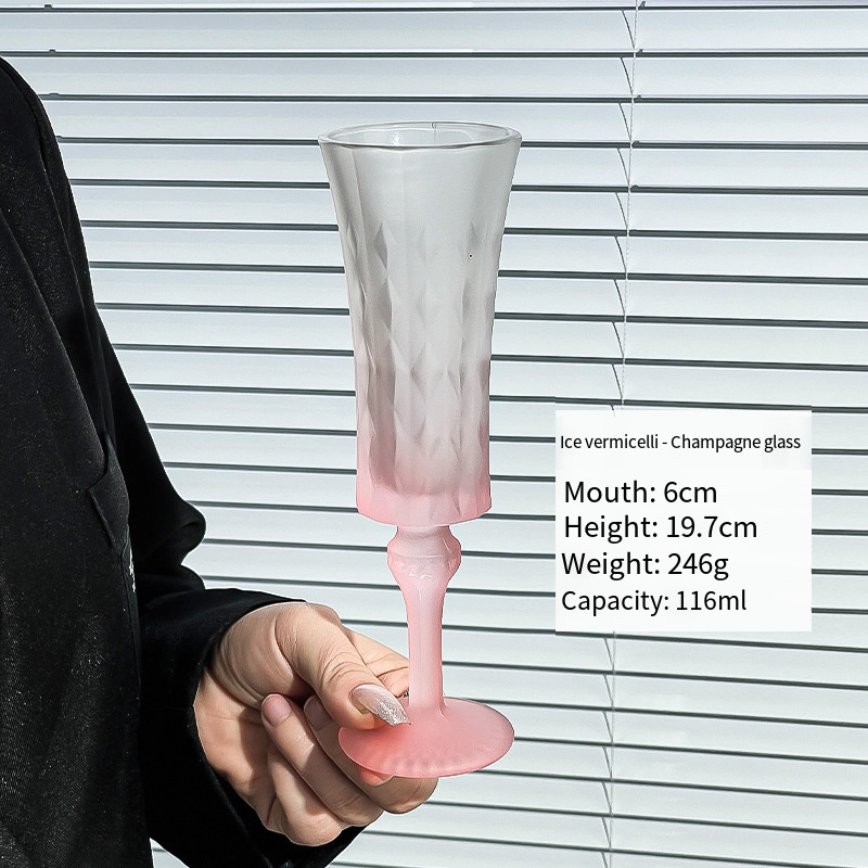The gradient and matte finish are showcased on a base of premium lead-free glass, chosen for its exceptional purity and durability:- Glass Purity: Free of lead and impurities, the glass boasts crystal-clear transparency in its palest gradient sections, allowing the true color of beverages to shine—whether the effervescence of champagne, the depth of red wine, or the clarity of cocktails. Its thin walls feel delicate in hand, yet the lead-free composition ensures strength, resisting chipping and maintaining its luster over time.