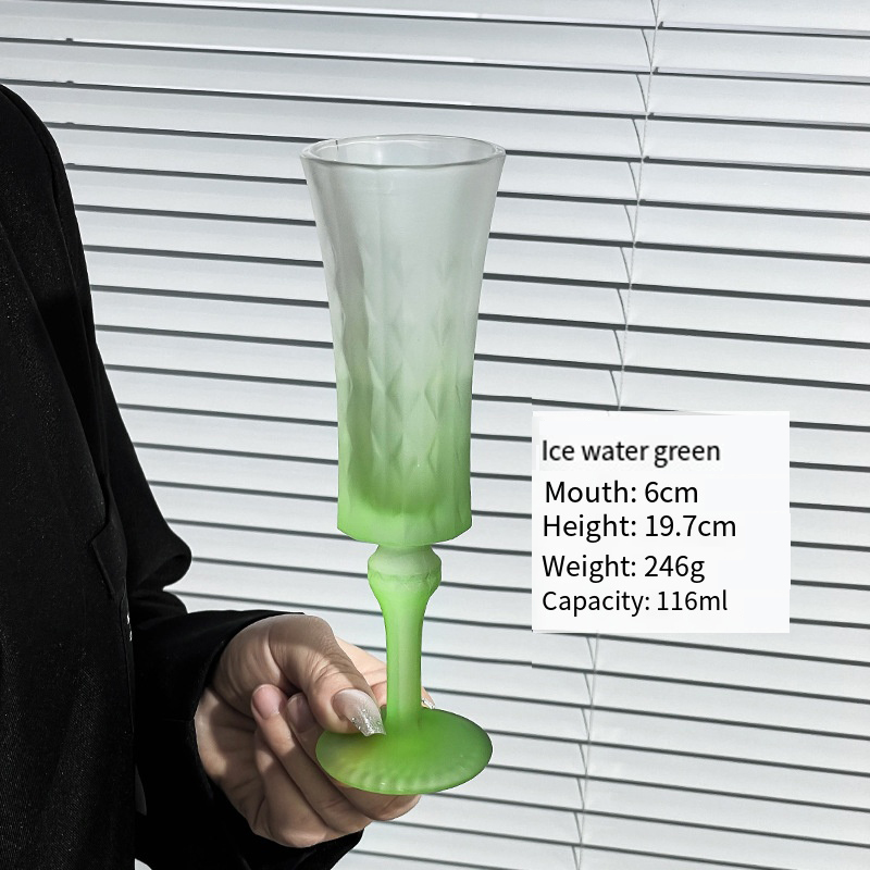 - Champagne Flute: A tall, narrow bowl where the gradient stretches vertically, emphasizing the glass’s height. The pink or green hue deepens at the base, fading to a soft pastel at the rim, making it perfect for toasts—bubbles rise through the gradient, creating a mesmerizing visual display.