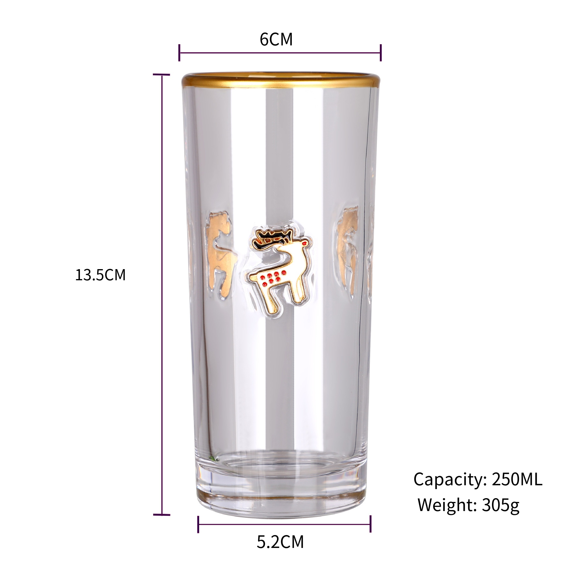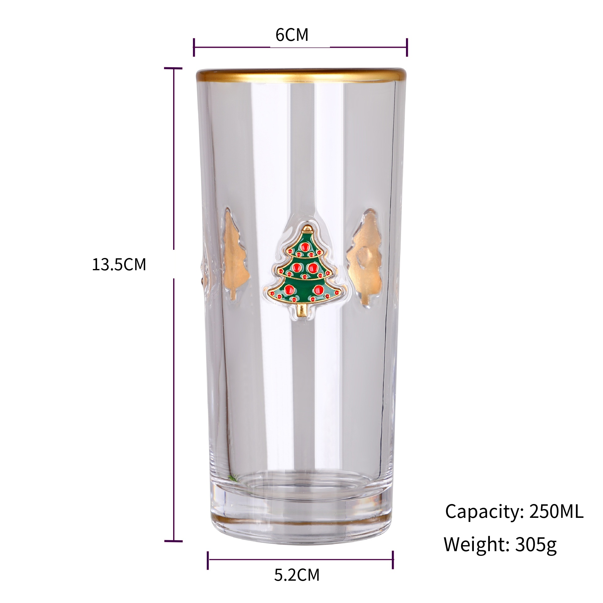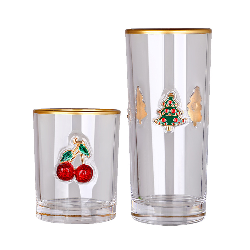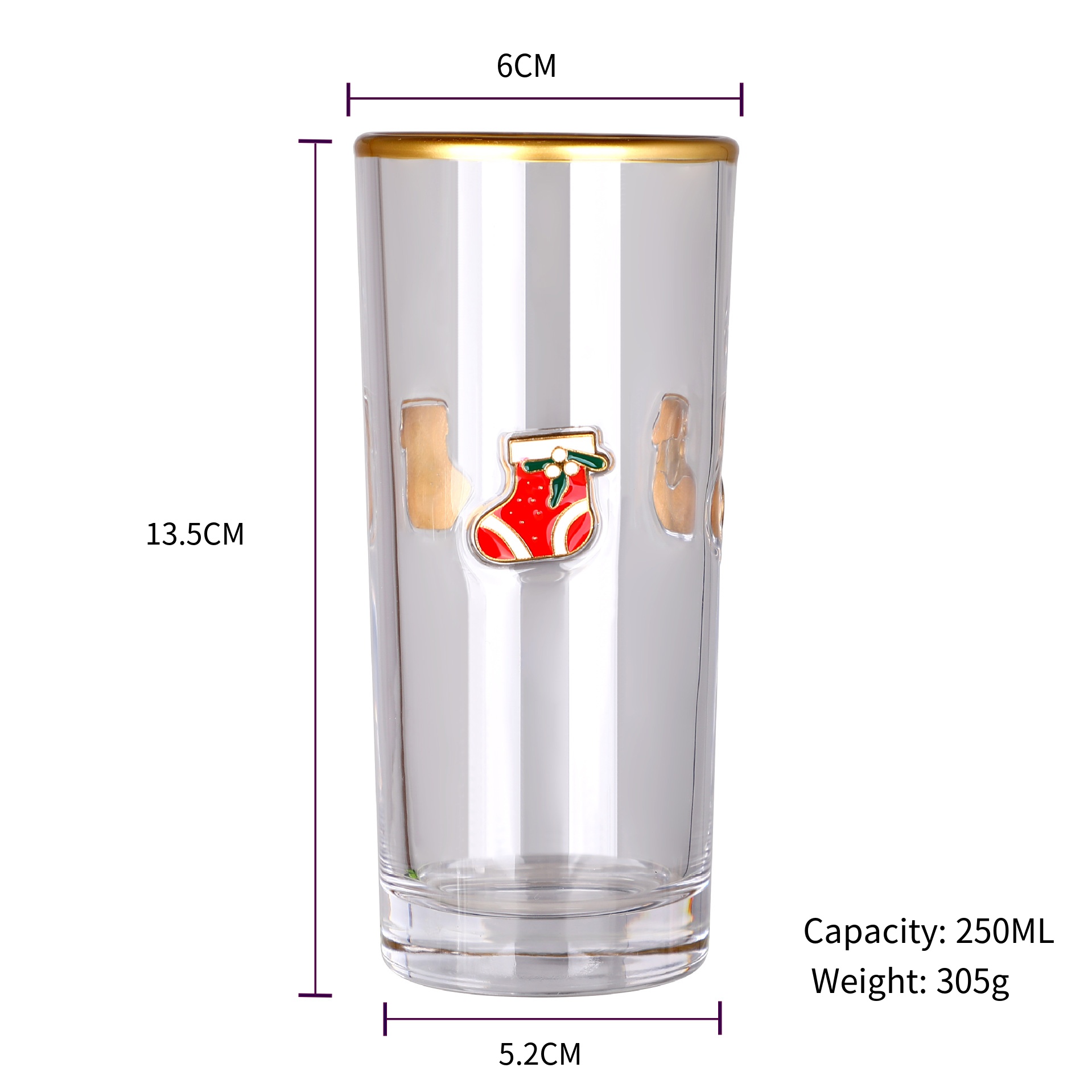 Crafted from premium soda-lime glass, these tumblers blend timeless clarity with playful metallic accents, making them a striking addition to any drinkware collection. The transparent glass body serves as a pristine canvas for intricate metal inlay decorations, which catch light to create a subtle shimmer, elevating both casual sips and special occasions.