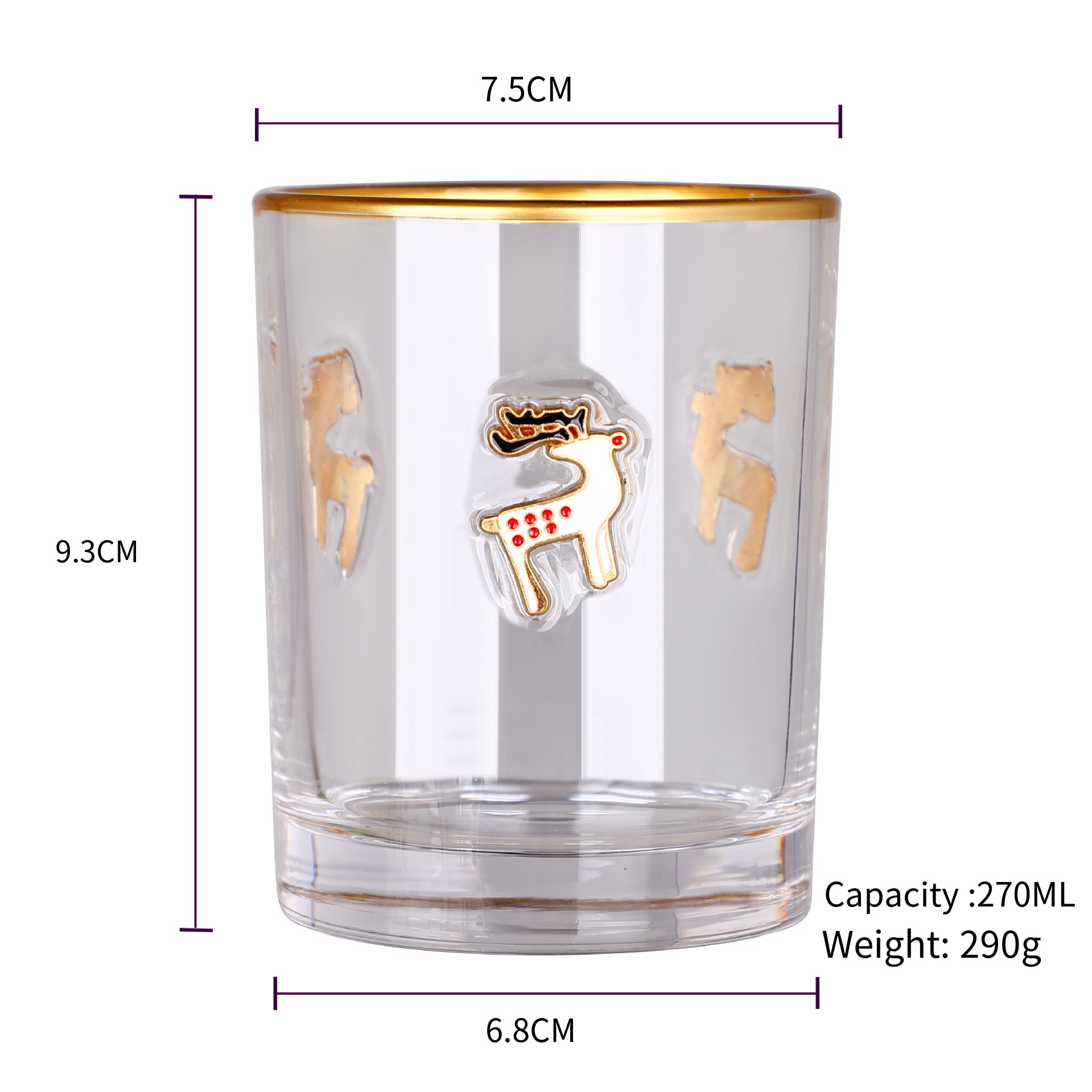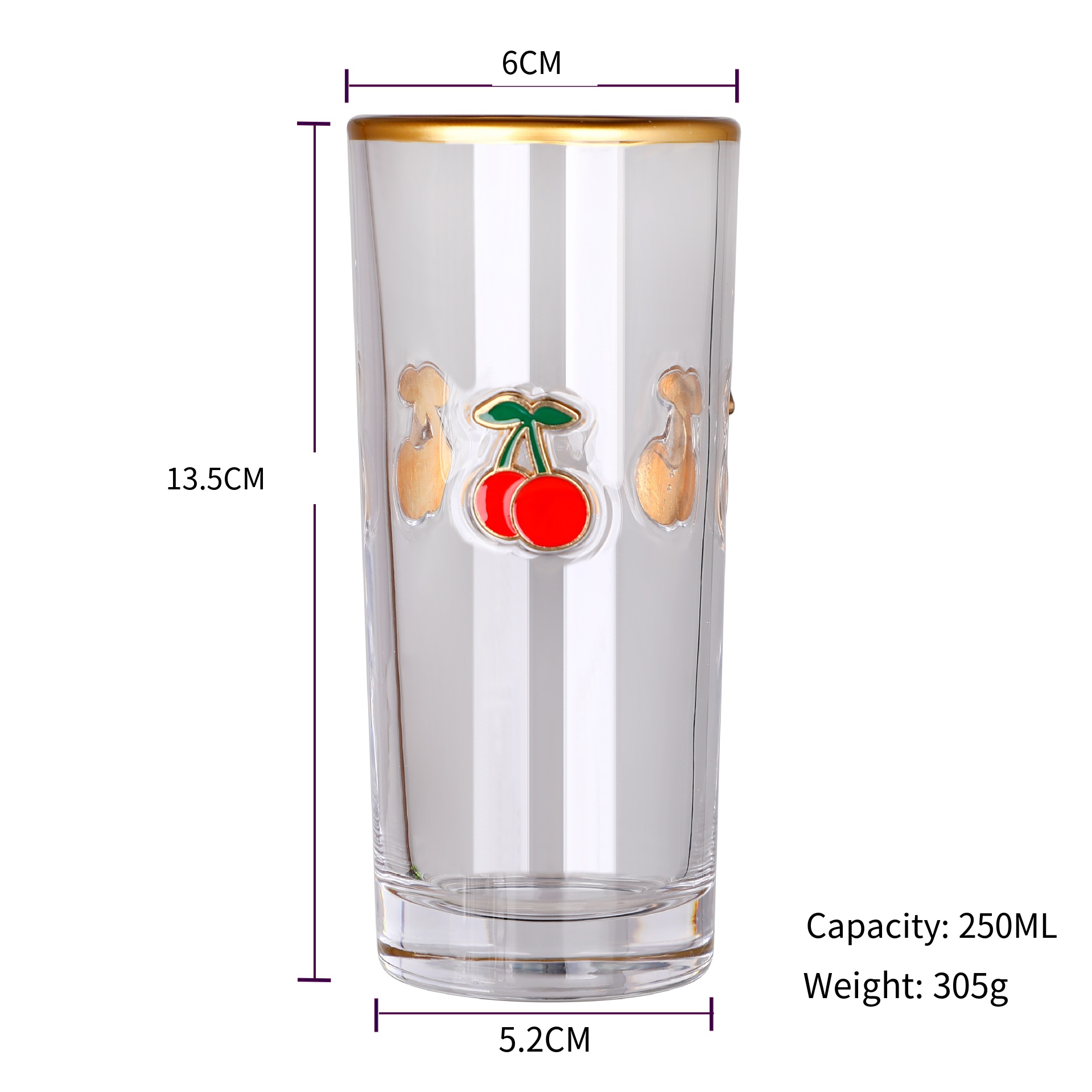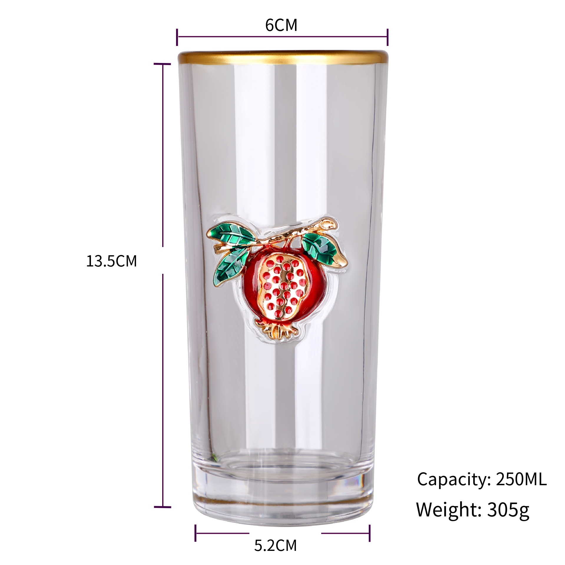 Crafted from premium soda-lime glass, these tumblers blend timeless clarity with playful metallic accents, making them a striking addition to any drinkware collection. The transparent glass body serves as a pristine canvas for intricate metal inlay decorations, which catch light to create a subtle shimmer, elevating both casual sips and special occasions.