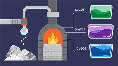 Research has shown that adding 0.4 to 0.7% of coloring agents to ordinary glass ingredients can impart color. Most coloring agents are metal oxides. As each metal element has a unique “spectral characteristic,” different metal oxides produce distinct colors. For instance: