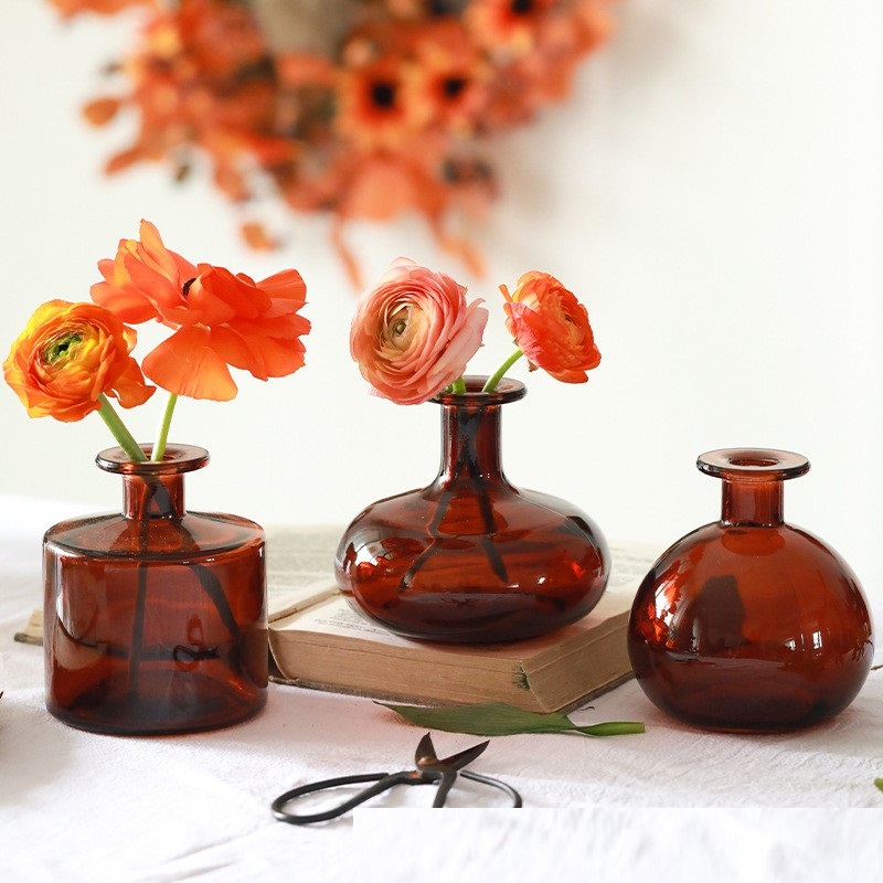 Wholesale of Spanish glass vases, European style Instagram home tabletop ornaments, small mouth hydroponic flowers, dried flower arrangements