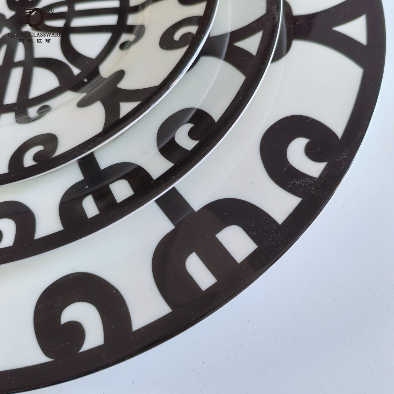These ceramic plates are not just ordinary tableware. With their unique and elegant black and white pattern, they exude a sense of luxury and fashion. The intricate design on the plates makes them a visual delight, adding an artistic touch to any dining setting.