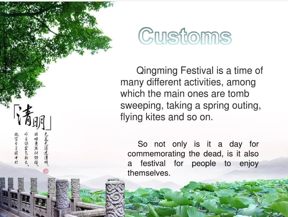 Most importantly,Tomb-sweeping Day was listed in the first batch of national intangible cultural heritage by Chinese