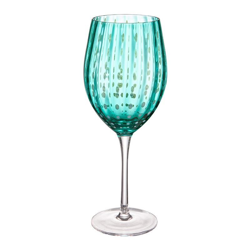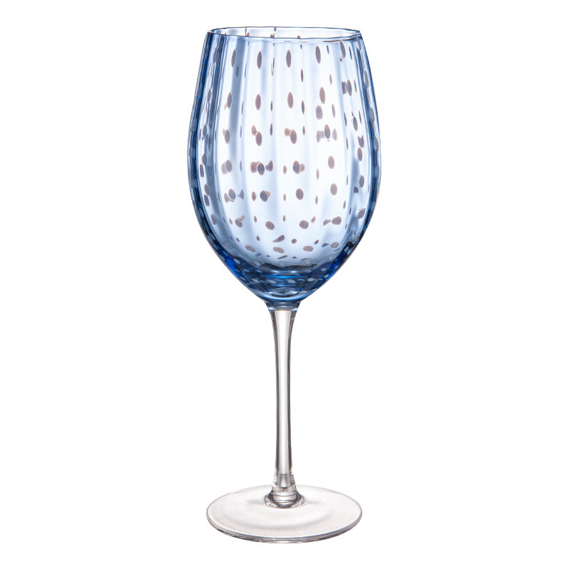 The star of these goblets lies in their hand-applied pearl-dot accents—tiny, rounded details that catch light like scattered dew, adding texture and visual interest without overwhelming the glass’s natural clarity. The dots are meticulously placed along the bowl and stem, creating a balanced, eye-catching pattern that feels both modern and nostalgic.