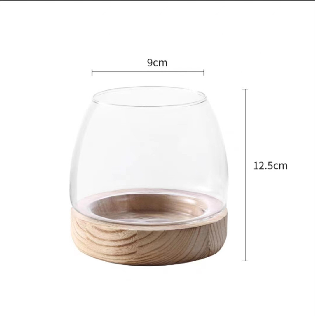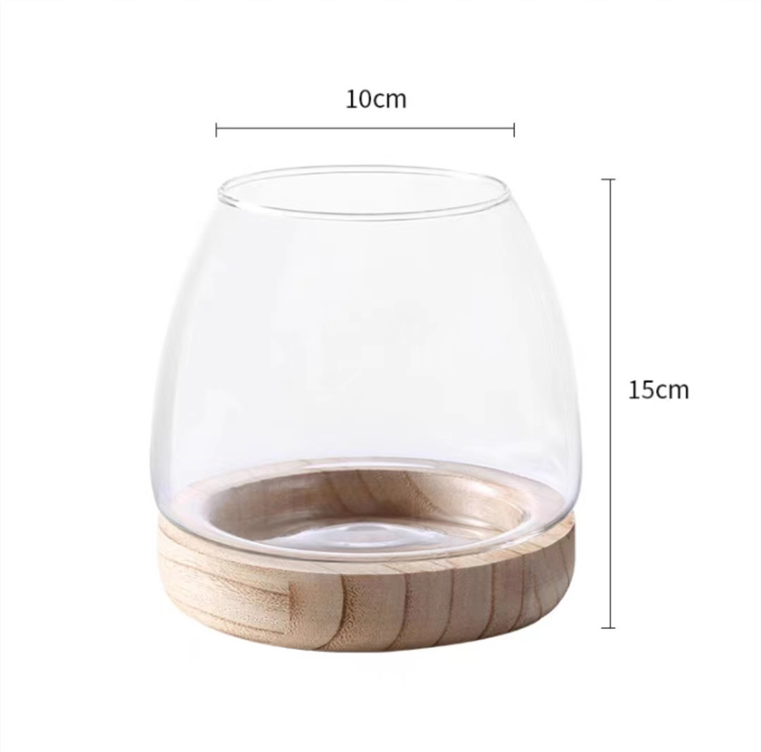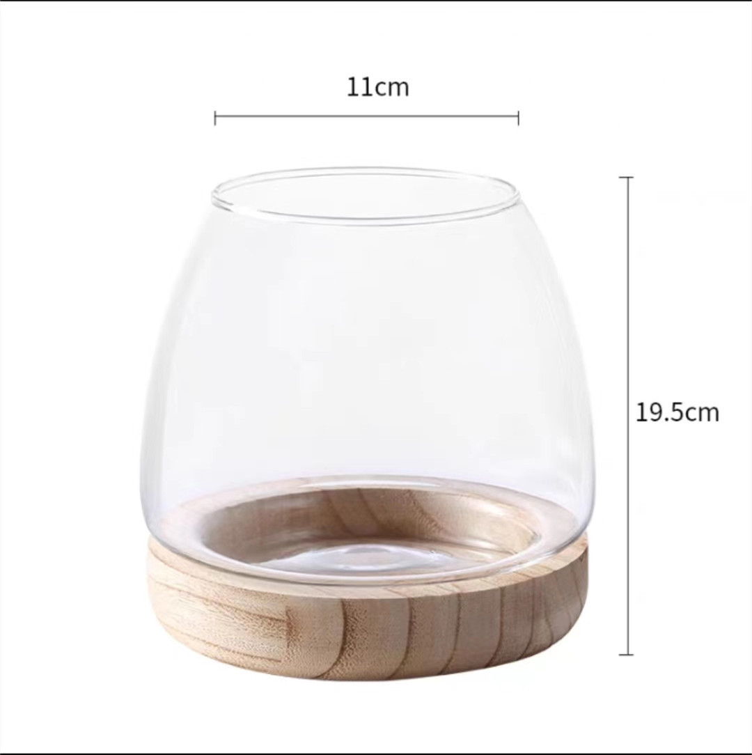 Crafted for discerning homes and commercial spaces, our glass vase with solid wood base seamlessly merges natural warmth with contemporary design. Featuring hand-finished glass and sustainably sourced wood, this versatile piece functions equally well as a floral centerpiece or miniature aquarium, adapting effortlessly to any aesthetic.