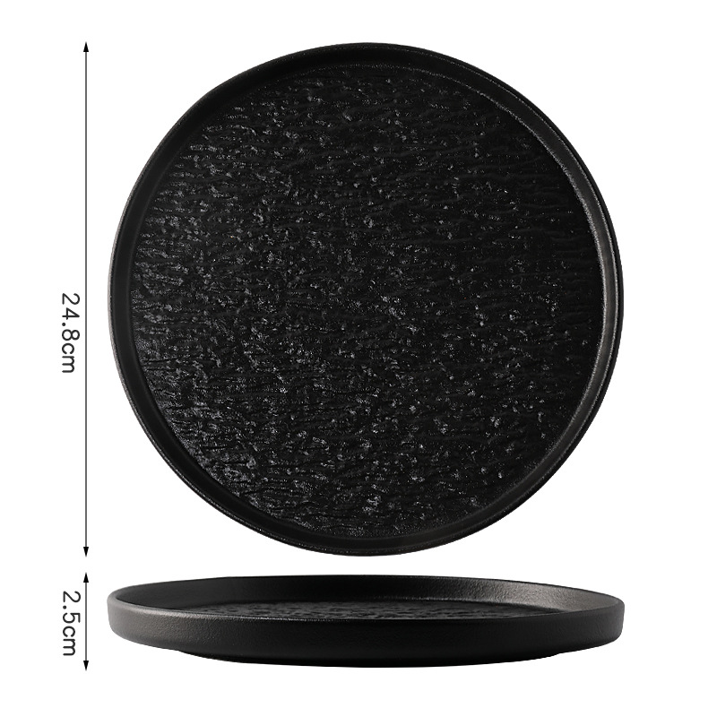 - Obsidian Black: A rich, deep black that evokes the sleekness of polished basalt. Its matte texture absorbs light, making vibrant foods (like red meats, green salads, or golden roasted vegetables) pop with striking contrast—perfect for formal dinners or modern, monochromatic table settings.