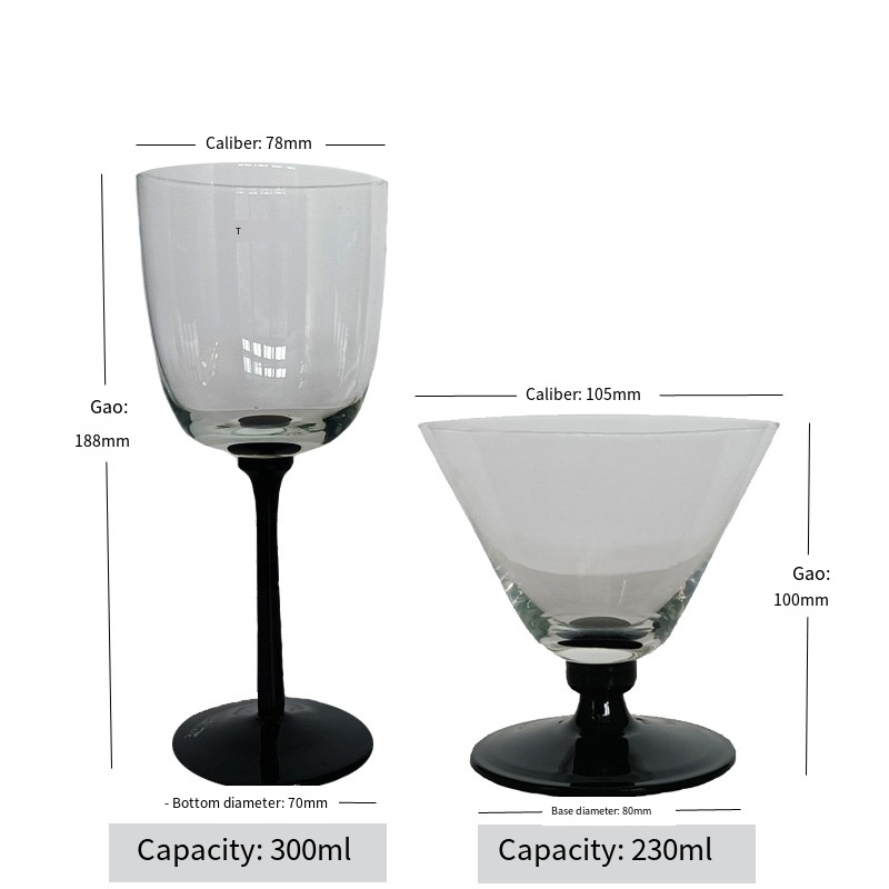 The defining feature of these goblets lies in their sleek, jet-black stems—crafted to create a bold contrast against the crystal-clear, flawlessly transparent bowls. Available in two distinct silhouettes, the tall-stemmed version exudes timeless grace, ideal for formal dinners and elegant soirees, while the short-stemmed variant offers a contemporary, approachable charm perfect for casual gatherings or intimate celebrations. The smooth, tapered stems and subtly curved bowls harmonize to create a balanced, visually captivating profile that elevates both the beverage and the moment.