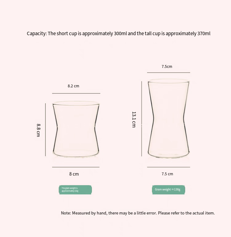 - Defining Tapered-Waist Silhouette: The star feature is its sleek, hourglass-inspired shape—with a gently narrowed middle that transitions smoothly to a slightly flared rim (for easy sipping) and a stable, flat base (to prevent tipping). This design not only adds visual grace but also enhances grip: the narrow waist fits comfortably in your hand, making it ideal for both hot and cold beverages.