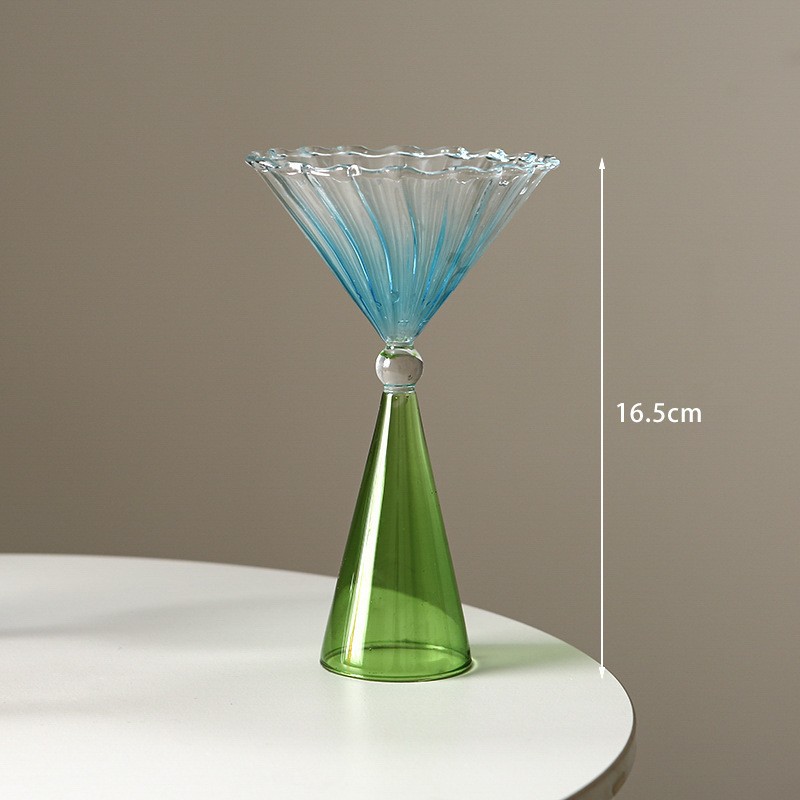 These goblets boast an eye-catching silhouette defined by their elegant tall stems and artfully shaped bowls, as showcased in the imagery. The stems, available in a spectrum of vibrant hues, add a playful yet refined contrast to the sleek, transparent bowls—some featuring delicate ruffled edges that catch light beautifully, while others exhibit smooth, modern lines for a minimalist charm. This thoughtful blend of color and form ensures the goblets stand out as statement pieces, whether paired with formal table settings, casual gatherings, or celebratory events.