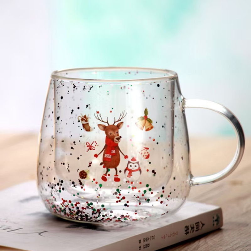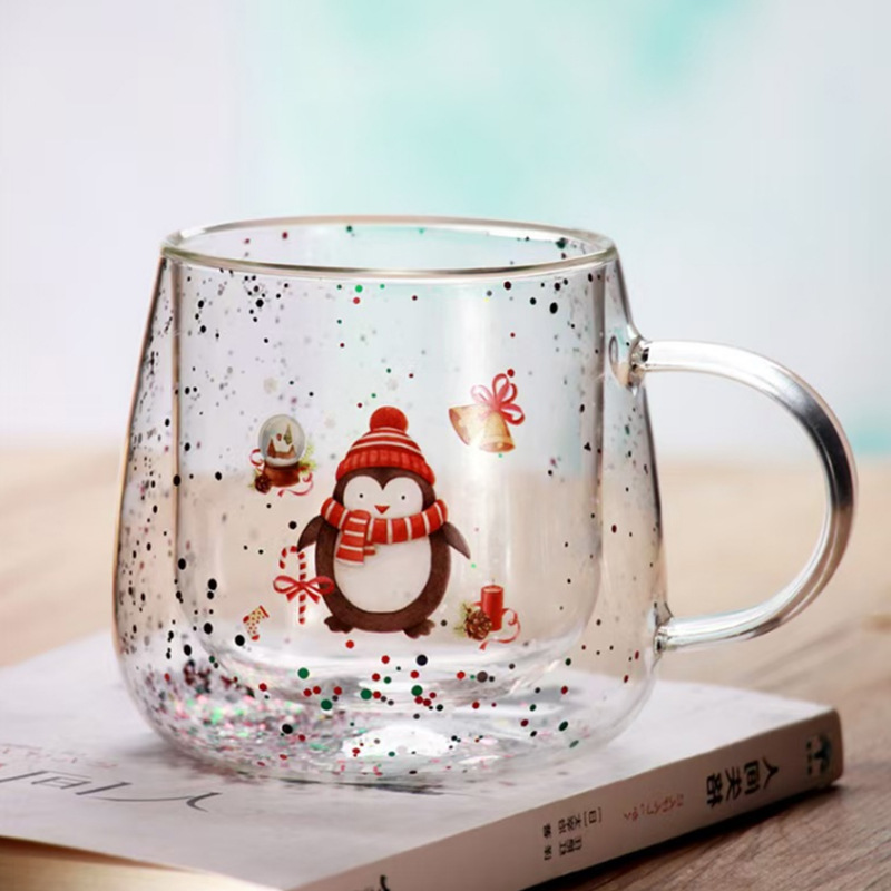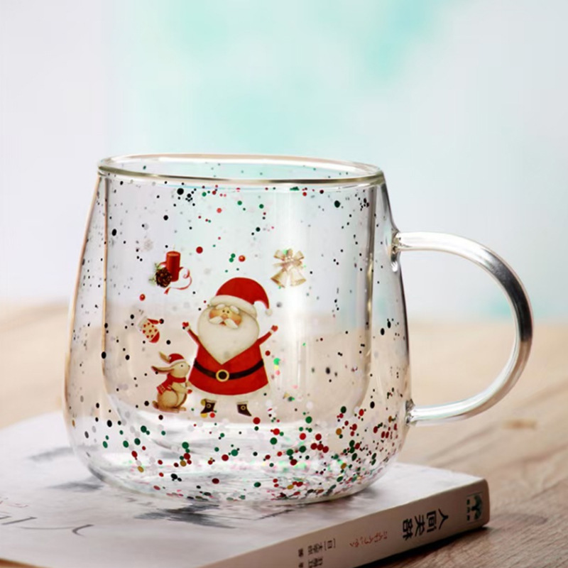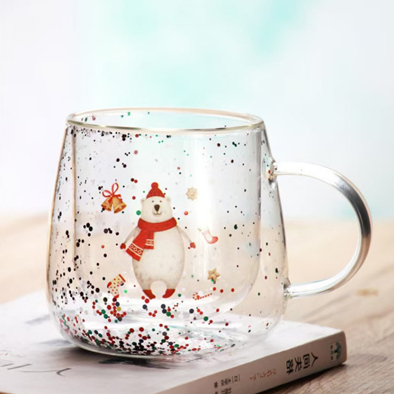 Elevate your holiday sipping and daily rituals with our exquisitely crafted double-wall borosilicate glass mugs, where artisanal design meets festive magic. Forged from premium borosilicate glass, these mugs blend exceptional clarity, durability, and innovative double-wall construction to create a captivating visual experience—vibrant Christmas characters and shimmering glitter float within the transparent layers, transforming every sip into a moment of seasonal joy.