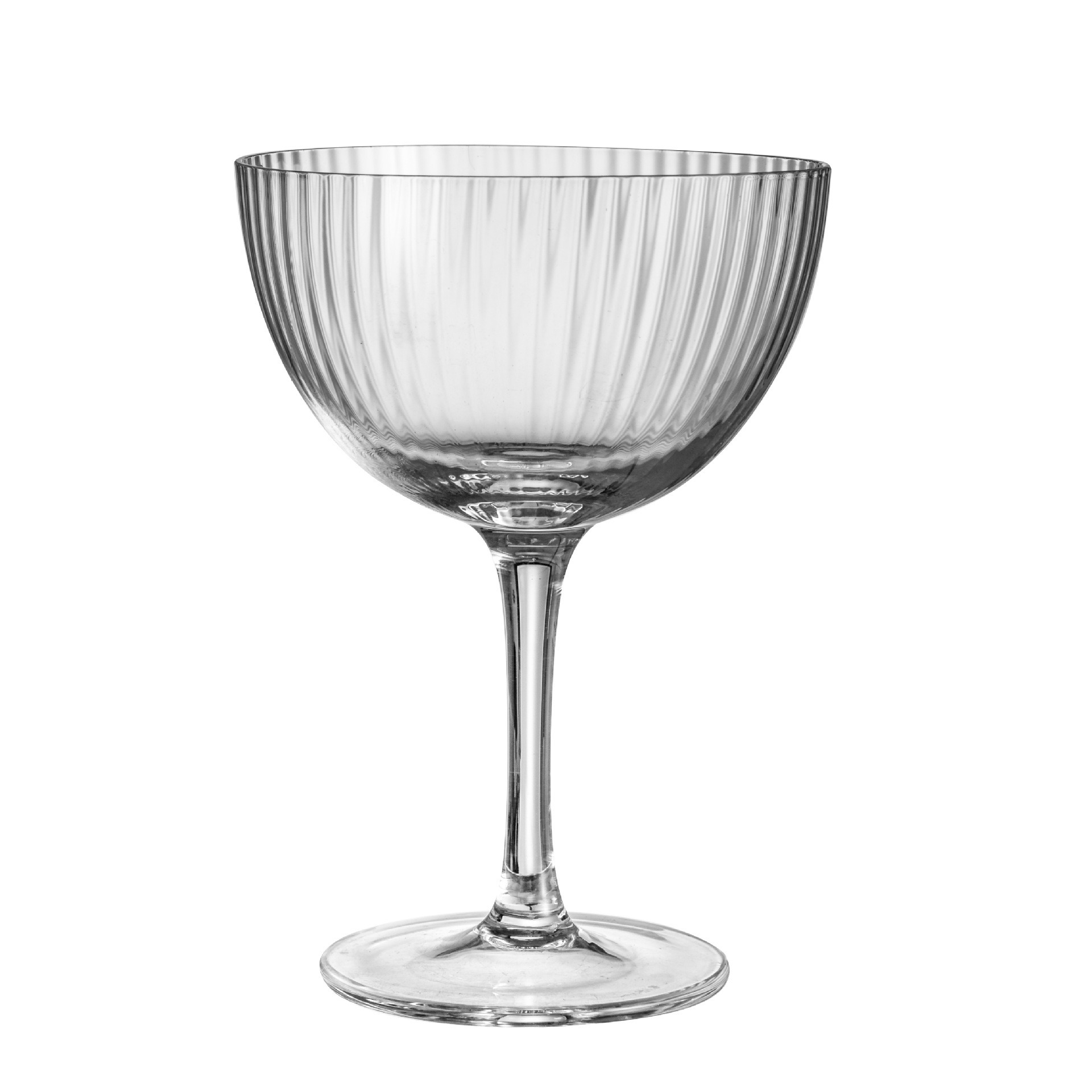 The set’s defining feature is its precise vertical ribs, which run along the entire bowl of each glass:
